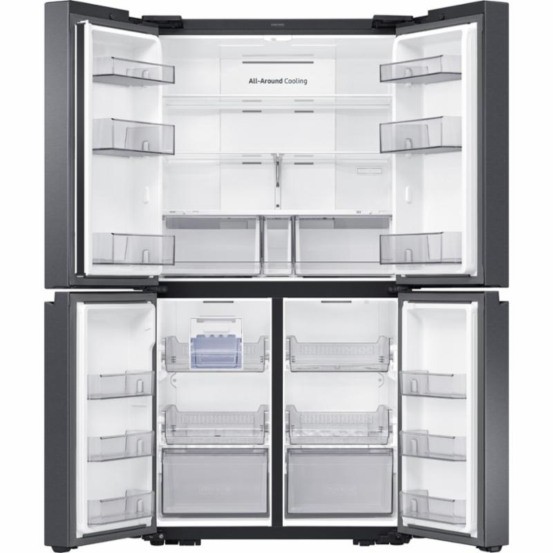 Your kitchen can stand out with an exceptional and stylish appliance in the Samsung 649L French Door Refrigerator SRF7100B. The exterior ‘built-in’ and elegant flat door design has antimicrobial coating placed upon its handle preventing fridge degradation from micro-organisms. Also, the exterior Anti-Fingerprint Finish prevents the build-up of hand marks, keeping your fridge exterior looking clean and pristine. The All Around Cooling Technology keeps your fridge consistently cool; this feature consistently monitors the current temperature and disperses cool air through the internal cabin via multiple aligned air vents. Power Cool and Power Freeze both work to quickly cool or chill newly stored food or drink products. Store a wide variety of soft drinks, juices, and milks in the Big Bottle Door Bins; using these helps create even more room within the internal fridge space. Keeping your wide range of fruit and vegetables fresh and tasty in the large capacity Big Crispers. The Moveable Twist Ice Maker produces plenty of ice cubes to stay cool during the warm weather months, simply twist and the ice dispenses. When the temperature decreases and there isn’t a need for ice you can simply detach and remove the machine to gain extra freezer space. The stylish and minimal LED display with accessible controls allows you to adjust the fridge settings and monitor the performance of your fridge. Size doesn’t affect quality; the 649L French Door Refrigerator fits in an Australian standard 1800mm cavity and still has both a dual freezer space and extensive storage space.